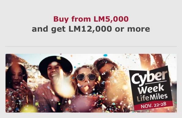 140% Bonus LifeMiles when you buy LifeMiles online. Minimum purchase of 5,000 miles. Full details Until Nov 28, 16