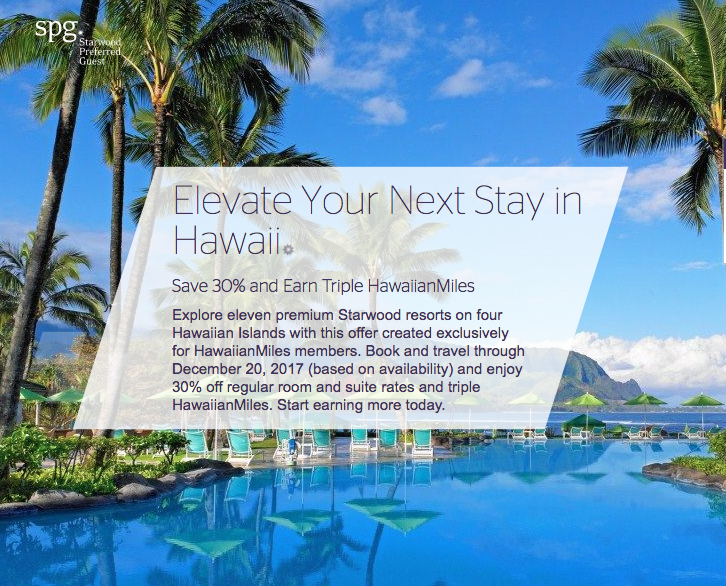 – Triple HawaiianMiles and save up to 30% for stays at participating Starwood Hotels in Hawaii.. More… Until Dec 20, 17