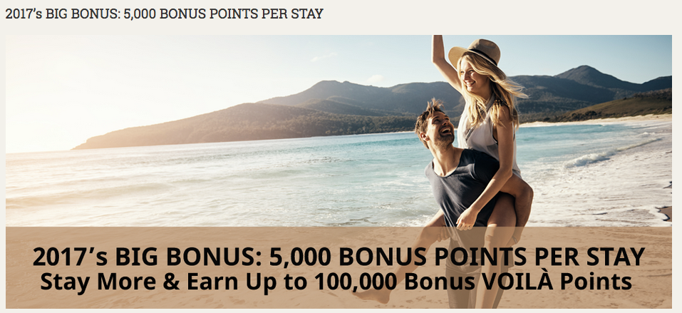 Voila Hotel Rewards has released the details of their first promotion for 2017 that actually kicked in on December 1st. From now until the end of the first quarter VHR members can earn 5,000 bonus points per stay for up to 20 stays.