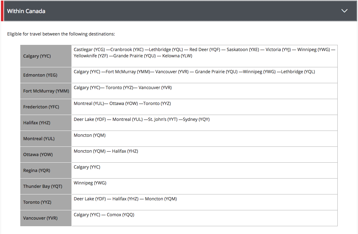 one-way segments) on select Air Canada flights within Canada or between