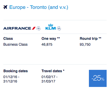 to redeem for a discounted business class award ticket between Toronto and Europe (with a few miles to spare