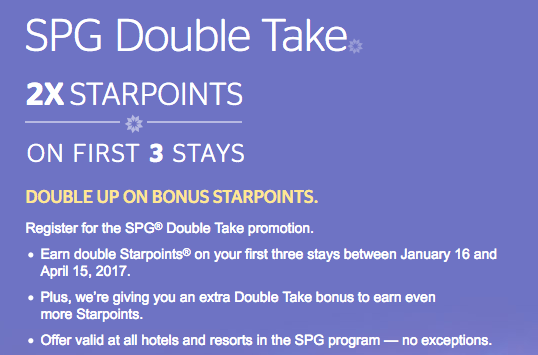 Marriott Rewards, Starwood Preferred Guest and Ritz-Carlton Rewards have synchronized their systemwide global offerings for the first quarter of 2017. All three programs will offer Double Points on the first three stays at participating hotels in each program.