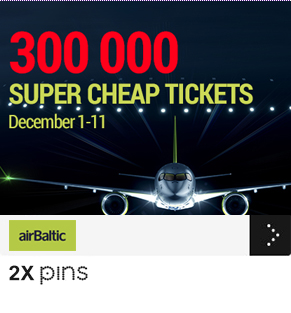 Earlier this week we let you know about airBaltic’s seat sale to celebrate the delivery of their CS300 aircraft but now that PINS Days has launched you can earn Double PINS for flights booked during this sale! You have until December 11th to book. Fares start as low as 15EUR and must be booked by December 11 for travel January 10 – November 26, 2017