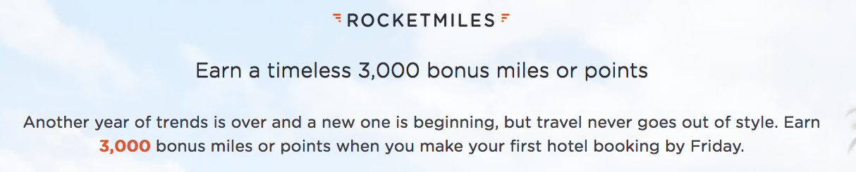 special promotion page at www.rocketmiles.com/timeless. The bonus can only be earned once per member. Book by Dec 16, 16