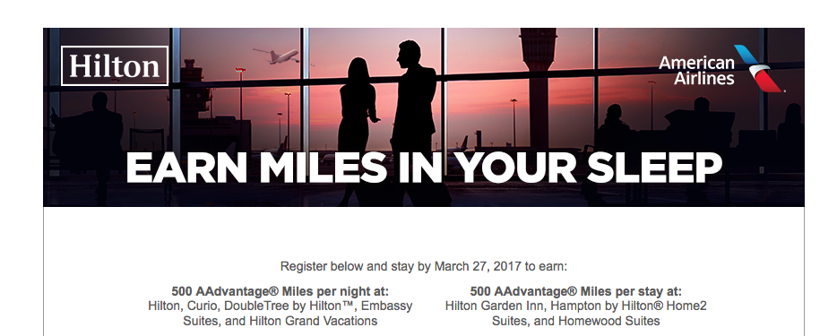Earn up to 500 AAdvantage Miles PER NIGHT when you stay at participating Hilton hotels. Full details, online registration and booking (Registration is required)