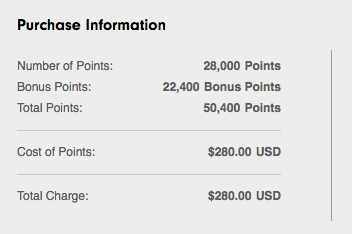 To buy 50,000 Points with the 80% bonus offer you need to buy 28,000