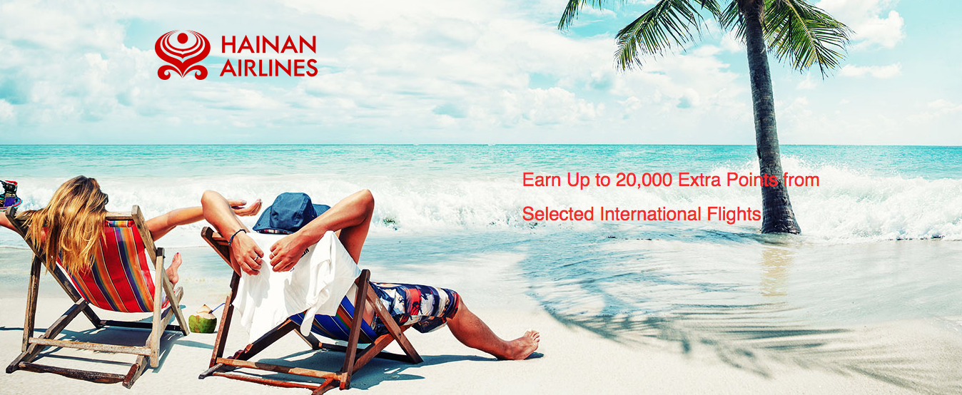 Earn up to 20,000 Bonus Fortune Wings Points when you fly on Hainan Airlines international flights. Register Online (Registration is required) Until Dec 31, 17