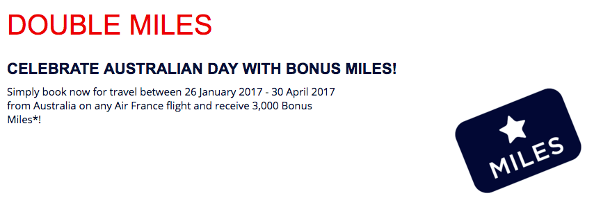 – 3,000 Bonus Flying Blue Miles when you fly Air France between Australia and Paris. More… For residents of Australia only Jan 26 – Apr 30, 17