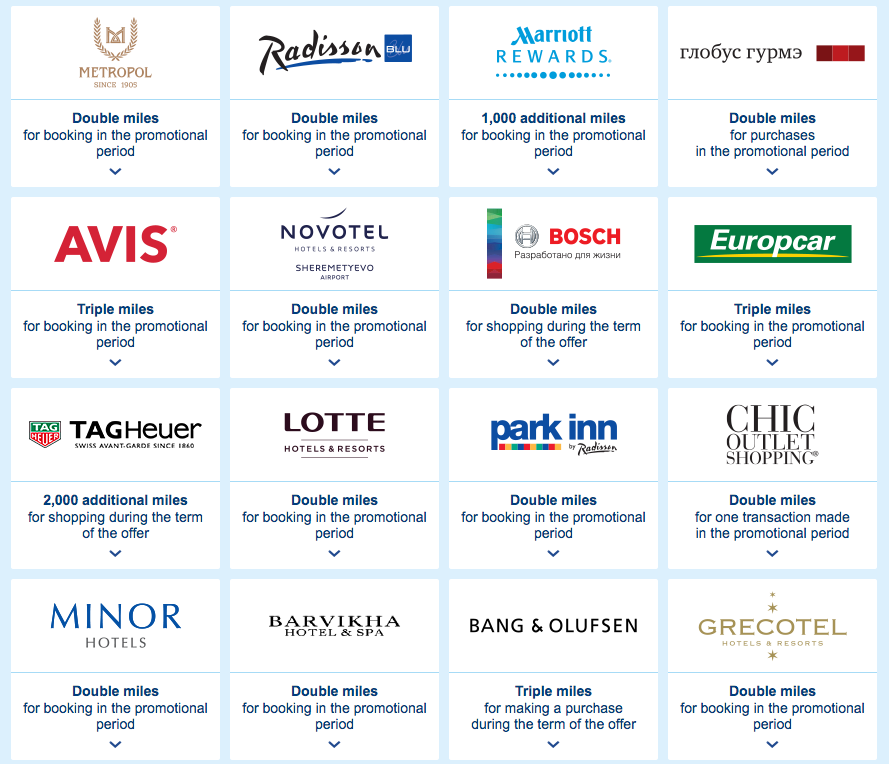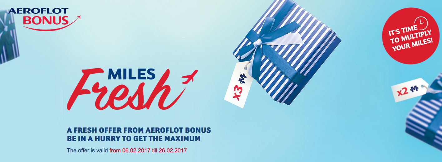 In our 12 year history we’ve seen perhaps a half dozen or so bonus offers per year from Aeroflot Bonus. Nothing spectacular really, a lot of your ordinary bonuses but in general they are few and far between making earning Aeroflot Bonus Miles a tough proposition compared to other programs. That changed on February 6th when Aeroflot launchedtheir biggest bonus ‘bonus’ miles promotion ever (at least in our minds). Called Miles Fresh, Aeroflot members can earn double, triple and other bonus miles offers at nearly 40 of their partners! From double miles for Radisson Blu stays to Triple Miles for Europcar rentals to 2,000 bonus miles for buying a Tag Heuer Watch, you name it, there is probably a bonus offer for it!