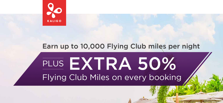 50% Bonus Flying Club Miles on all your hotel stays booked via Kaligo. Full details and online booking Book by Mar 31 for stays until Dec 31, 17