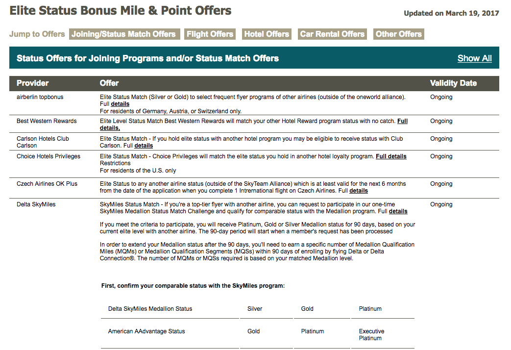 Looking for status matches or flight, hotel and other offers that award