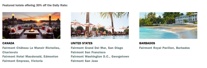 Double Avios, up to 30% off the rate of the day and $25 hotel credit per stay for stays at participating Fairmont Hotels Worldwide. Full details & online booking Book by Jun 30 for stays until Aug 31, 17