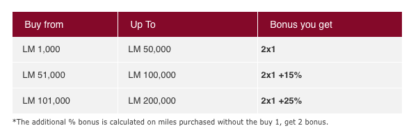Avianca has brought back yet another great buy miles bonus. It is the standard offer of 100% bonus miles when buying at the lowest levels but they’ll through in an additional 15% or 25% when you buy more miles.