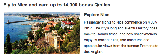Earn up to 14,000 Bonus QMiles when you fly between Nice