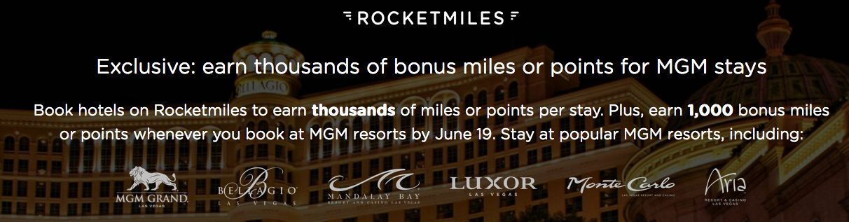 special promotion page at www.rocketmiles.com/mgm. Book by Jun 19, 17