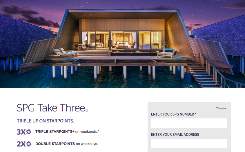 Hot on the heels of the Marriott MegaBonus launch for Summer is the Starwood Preferred Guest summer promotion. Called Take Three, SPG will award up to triple Starpoints for each stay of 2 or more nights at participating Starwood Hotels Worldwide. Weekday stays (Mon-Thu) earn double Starpoints while Weekend stays earn Triple Starpoints.