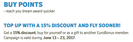 15% discount when you buy or gift SAS EuroBonus Points. Full details. Until Jun 23, 17