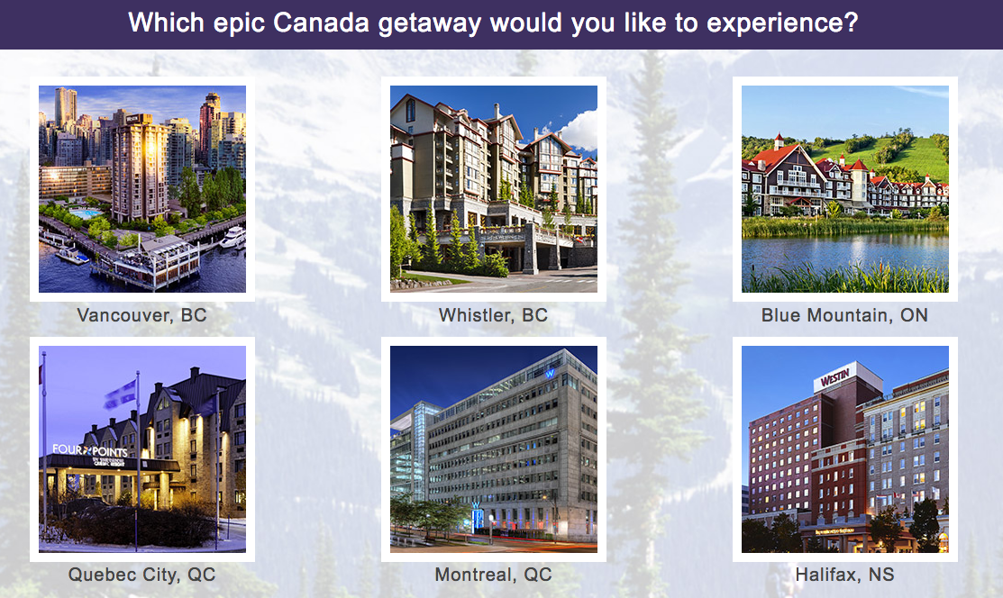 The SPG contest winners can choose from any one of 6 cities to stay at across Canada: