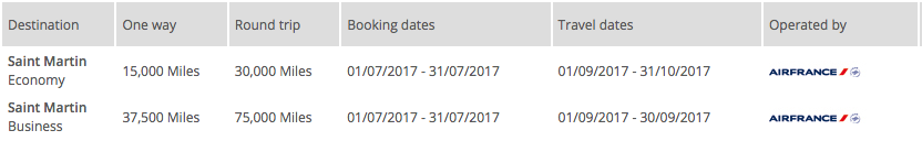 between! This month St. Maarten is available in business class at 50% off as well as a couple of Asian cities at 50% off in Premium Economy.