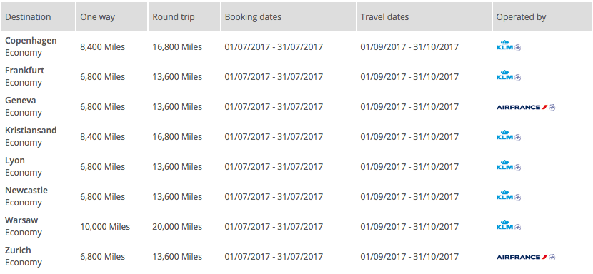 for an award ticket. Destinations vary by each promotional period. Full Details Book by Jul 31 for travel Sep 1 – Oct 31, 17