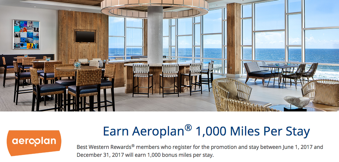 Earn 1,000 Bonus Aeroplan Miles for each stay at Best Western Hotels Worldwide. Full details, online registration and booking (Registration is required) Until Dec 31, 17
