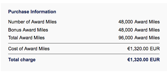 You can buy 96,000 miles for EUR 1320. Those 96,000 miles will be enough