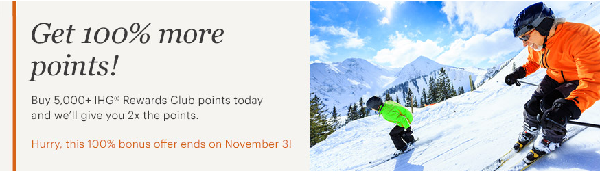 100% Bonus IHG Rewards Club Points when you buy points online. Minimum purchase of 5,000 points. Full details. Until Nov 3, 17
