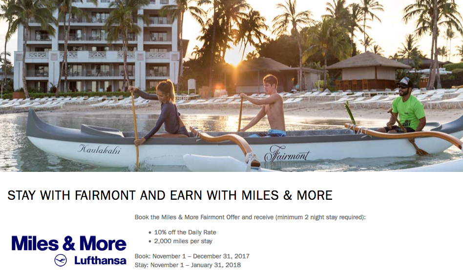 Quadruple Miles & More Miles for stays of 2 or more nights at Fairmont Hotels Worldwide. Full details & online booking Book by Dec 31 for stays until Jan 31, 18