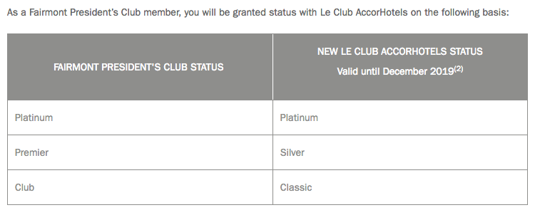 This means that as of July 2, 2018 Fairmont President’s Club will come