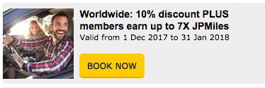 Earn up to 7x JPMiles when you rent with Hertz for 3 or more days in USA, Canada, Europe, Australia, New Zealand and Asia. Full details and online booking Book by Jan 31 for rentals until Feb 28, 18