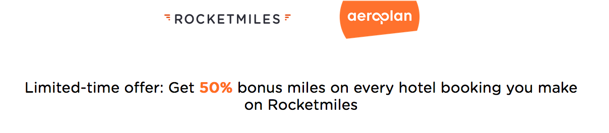 – 50% Bonus Aeroplan Miles on your next hotel stay booked via Rocketmiles. More… Book by Mar 31, 18