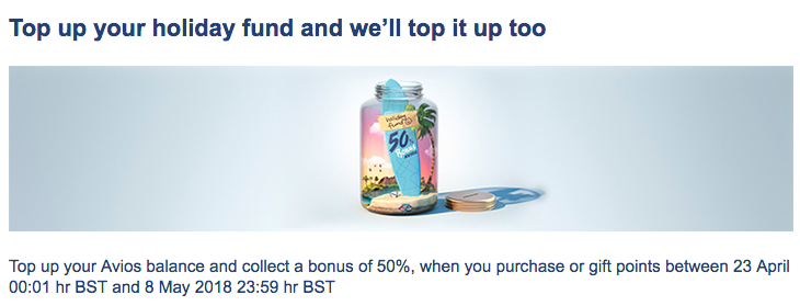50% Bonus Avios when you buy or gift Avios online. Buy Avios here Until May 8, 18