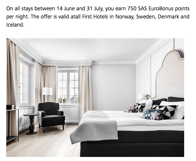 – 750 EuroBonus Points per night for stays at First Hotels in Norway, Sweden, Denmark and Iceland. More… Until Jul 31, 18