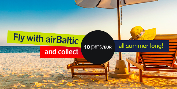 10x PINS on all airBaltic flights. Book online at airBaltic. Book by Aug 31 for travel until Dec 31, 18