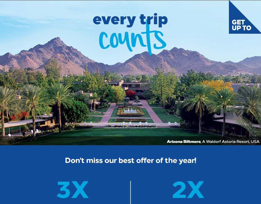 Earn up to Triple Honors Points for stays at Hilton family of hotels Worldwide. Earn Triple points on all luxury and resort stays, double points on all other stays. Full details, online registration and booking (Registration is required) Sep 10 – Jan 3, 19