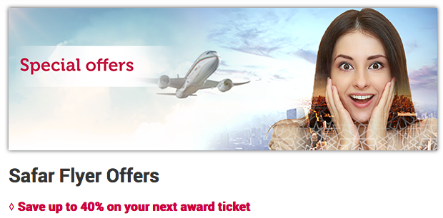 40% Safar Flyer Miles Discount for award tickets on all Royal Air Maroc flights. More… Book by Oct 4 for travel until Mar 31, 19
