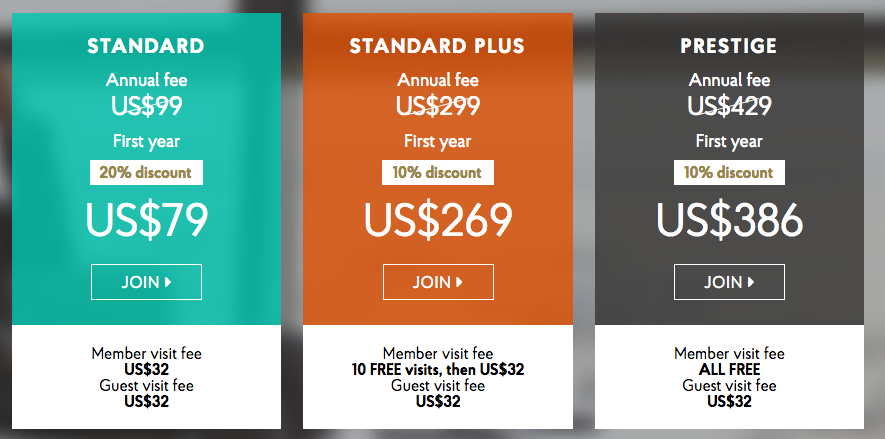 Standard Plus membership includes 10 free visits for the member and additional member visits are charged at US$32 per visit.