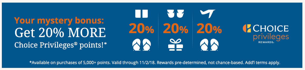 from Choice Privileges and offers a 20% to 40% bonus when you buy 5,000 or more