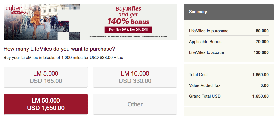 140% Bonus LifeMiles when you buy LifeMiles online. Buy LifeMiles here! Until Nov 26, 18