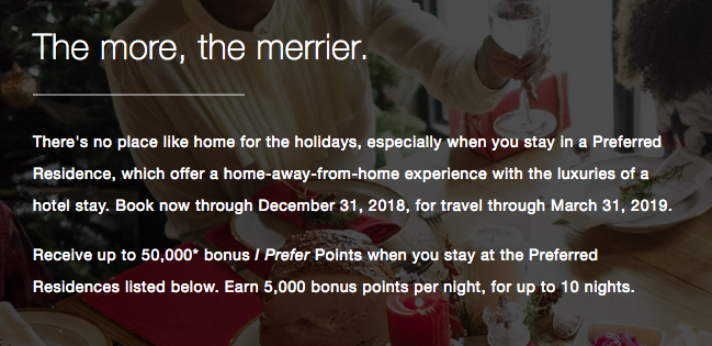 5,000 Bonus iPrefer Points per night, for up to 10 nights for stays at Preferred Residences Worldwide. Full details & online booking