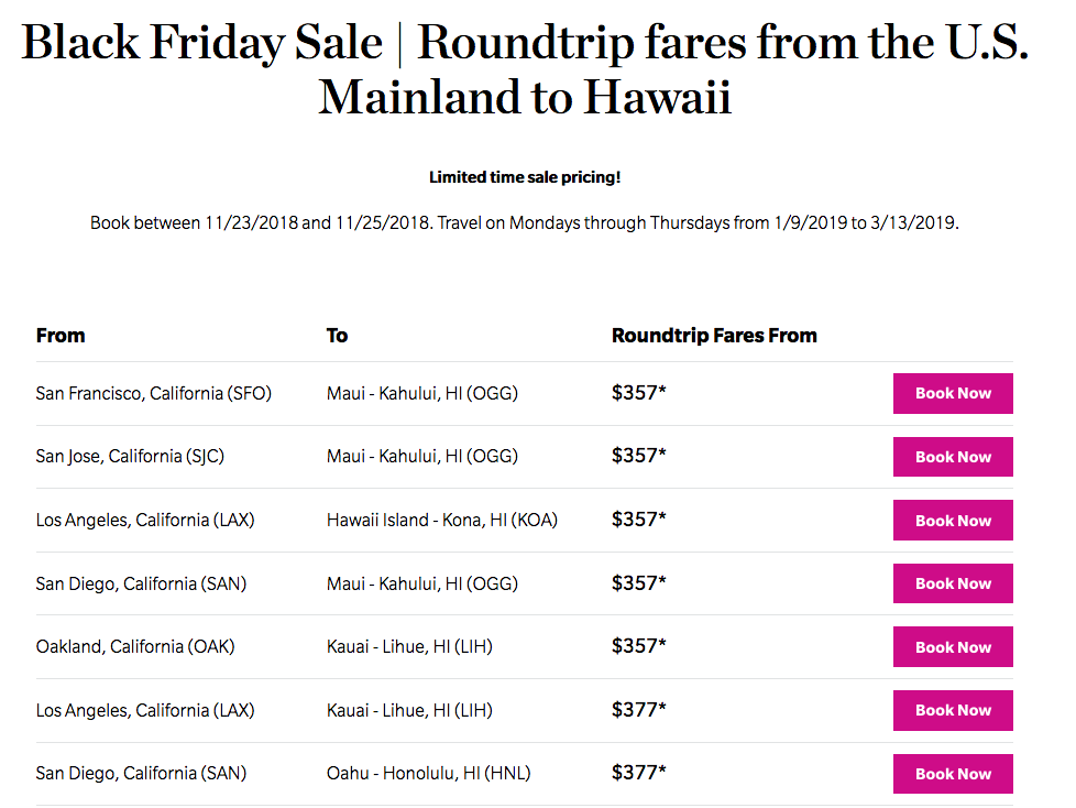 Exclusive Black Friday Fares from Hawaiian Airlines – Starting from $357 RT. For Winter Travel. Ends 11/25. Book online here!