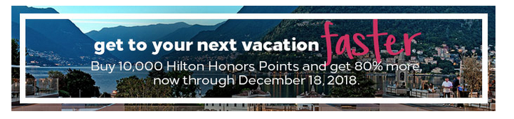 Up to a 100% Bonus when you buy 10,000 or more Hilton Honors points online. Buy points here Until Dec 18, 18