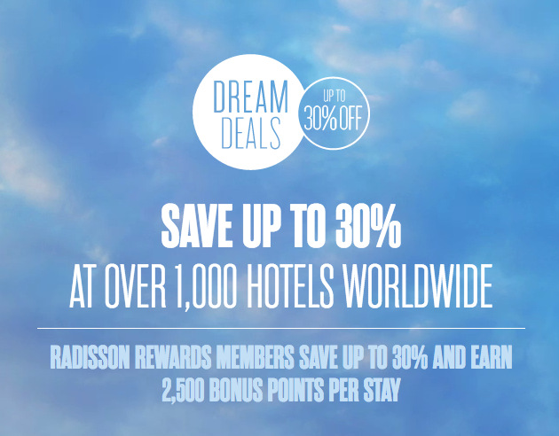 2,500 Bonus Radisson Rewards Points for stays at participating