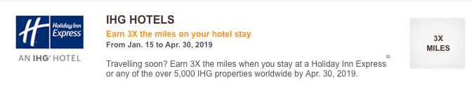 Earn Triple Aeroplan Miles for stays at all participating IHG Hotels Worldwide. Full details, online registration and booking (Registration is required) Until Apr 30, 19