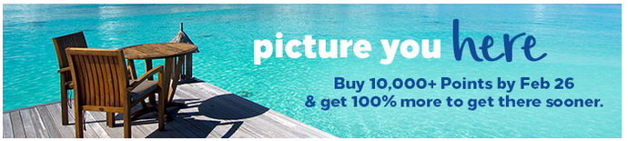 members. Unlike the offer towards the end of 2018 that ranged from 80 to 100% this one is a flat 100% if you buy 10,000 or more points at one time. This means you are paying US$ 0.5 cents per point which can be easily redeemed at values of 0.8 cents or more!