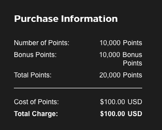 by only buying 10,000 points (+10,000 bonus) for only US$100.