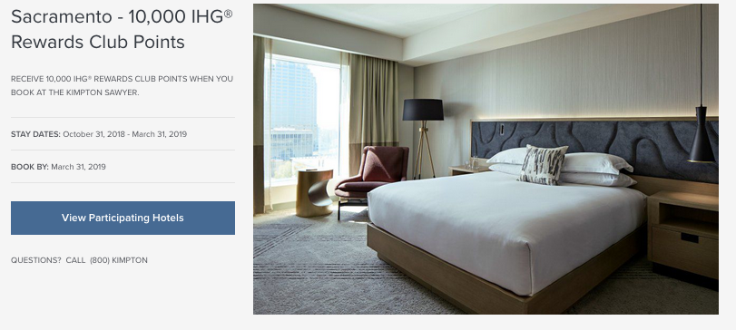 Earn 10,000 Bonus IHG Rewards Club Points when you stay 3 or more nights at the Kimpton Sawyer Sacramento. Full details & online booking. Until Mar 31, 19