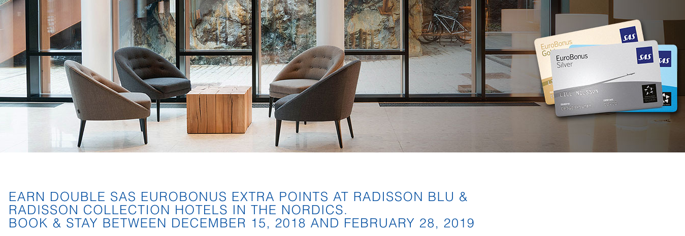 – Double EuroBonus Points when you stay at Radisson Blu and Radisson Collection Hotels in the Nordic countries. More… Until Feb 28, 19