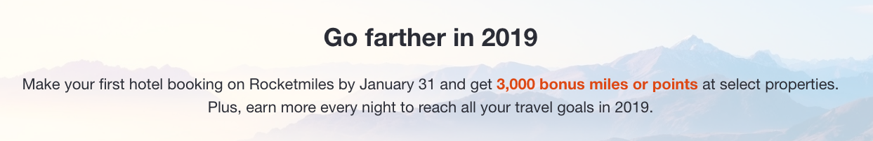 special promotion page at www.rocketmiles.com/2019-travel/. The bonus can only be earned once per member. Book by Jan 31, 19
