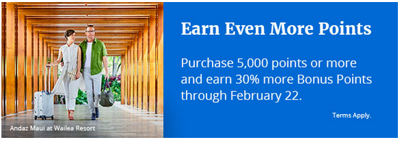 30% Bonus World of Hyatt Points when you purchase 5,000 or more points. Buy World of Hyatt points here Until Feb 22, 19